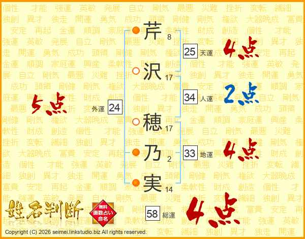 芹沢穂乃実さんの総運は58画の4点!