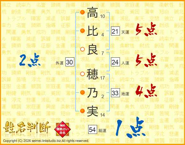 高(10画)比(4画)良(7画) 穂(17画)乃(2画)実(14画)