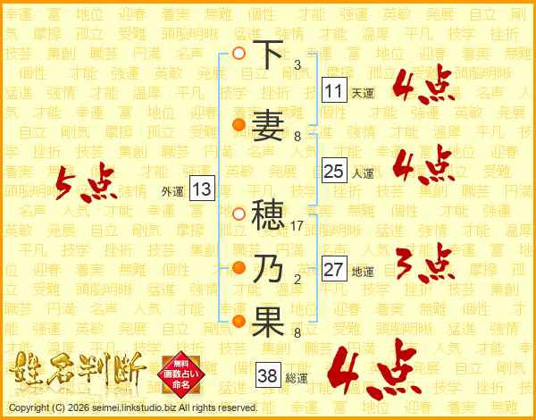 下妻穂乃果さんの総運は38画の4点!