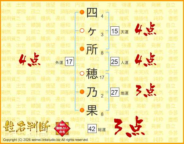 四ヶ所穂乃果さんの総運は42画の3点!