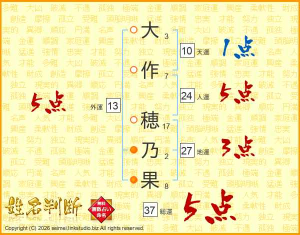 大作穂乃果さんの総運は37画の5点!