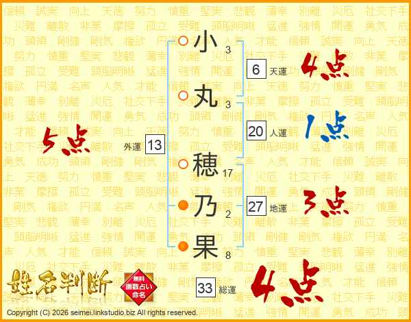 小丸穂乃果さんの総運は33画の4点!