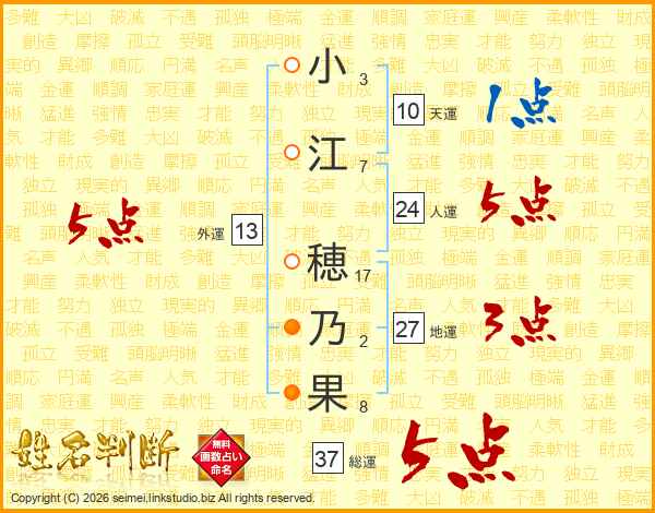 小江穂乃果さんの総運は37画の5点!