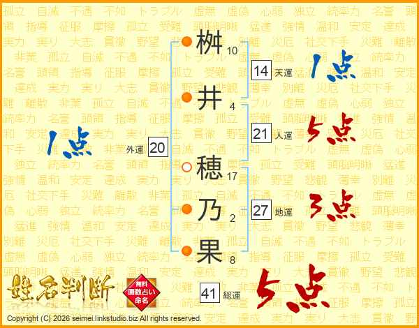 桝(10画)井(4画) 穂(17画)乃(2画)果(8画)