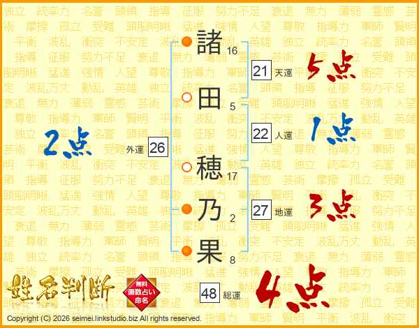 諸田穂乃果さんの総運は48画の4点!