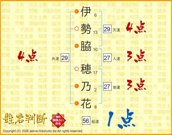伊勢脇穂乃花さんの外運は29画の4点!