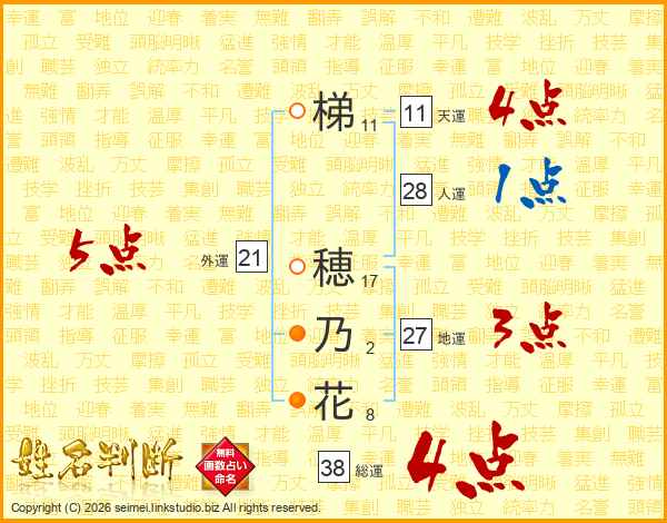 梯(11画) 穂(17画)乃(2画)花(8画)