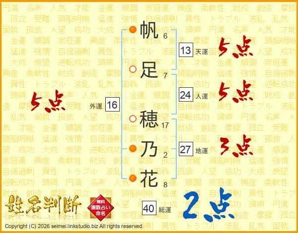 帆足穂乃花さんの外運は16画の5点!