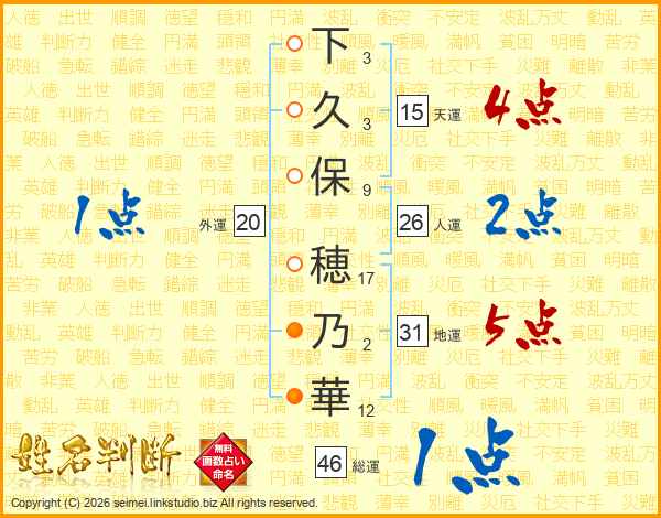 下久保穂乃華さんの総運は46画の1点!