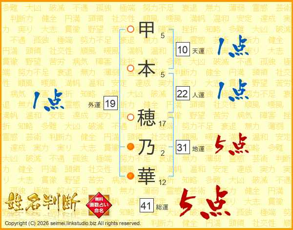 甲本穂乃華さんの外運は19画の1点!
