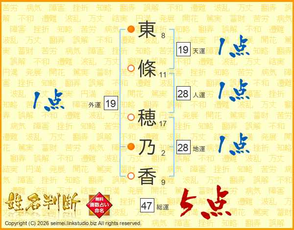 東條穂乃香さんの総運は47画の5点!