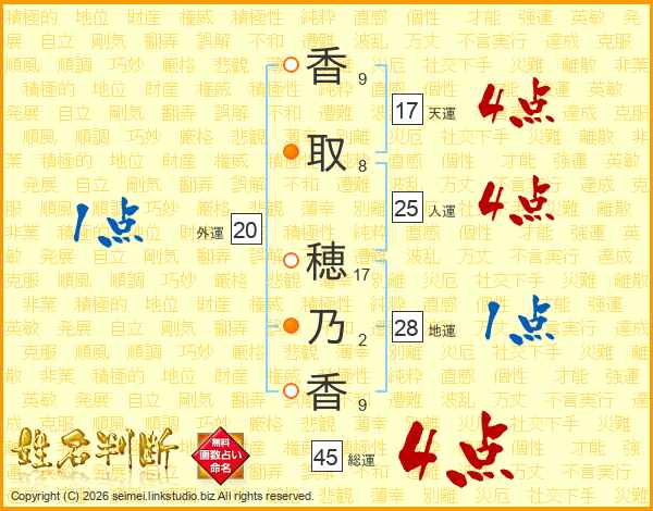 香取穂乃香さんの総運は45画の4点!