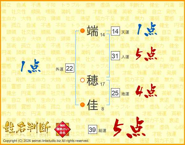 端(14画) 穂(17画)佳(8画)