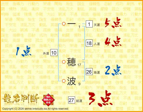 一(1画) 穂(17画)波(9画)