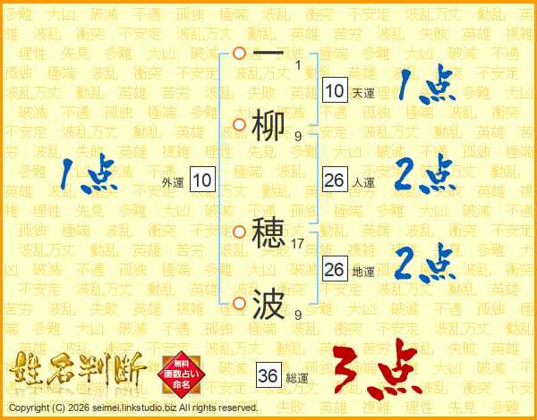 一柳穂波さんの地運は26画の2点!