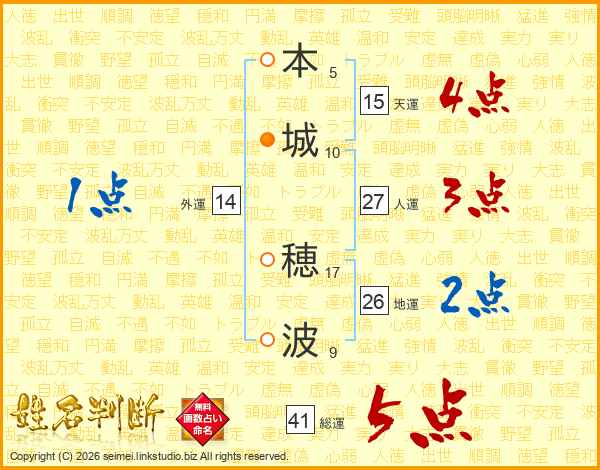 本城穂波さんの総運は41画の5点!