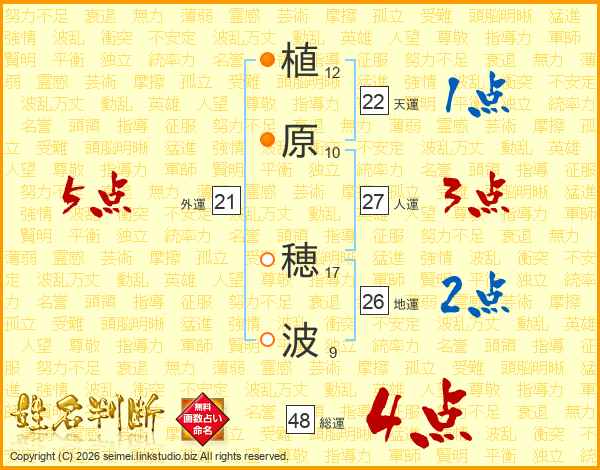 植原穂波さんの総運は48画の4点!
