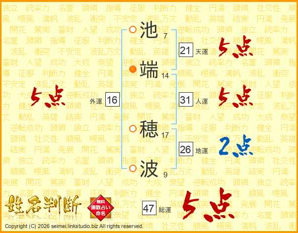 池端穂波さんの総運は47画の5点!