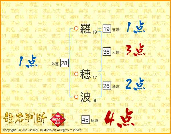 羅穂波さんの地運は26画の2点!