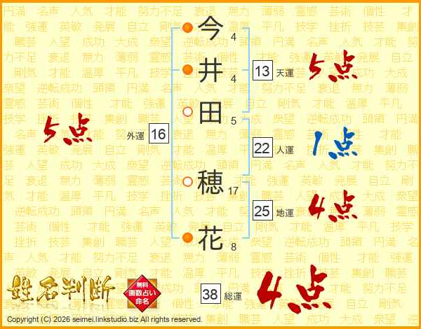 今(4画)井(4画)田(5画) 穂(17画)花(8画)