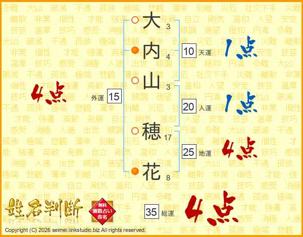 大(3画)内(4画)山(3画) 穂(17画)花(8画)
