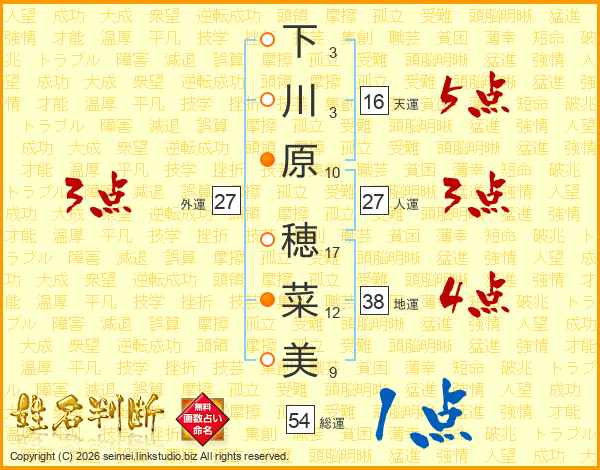 下川原穂菜美さんの総運は54画の1点!