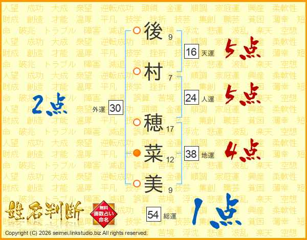 後村穂菜美さんの総運は54画の1点!