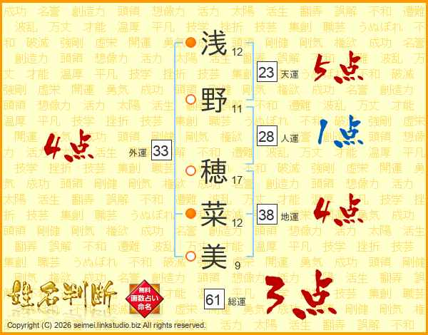 浅野穂菜美さんの外運は33画の4点!