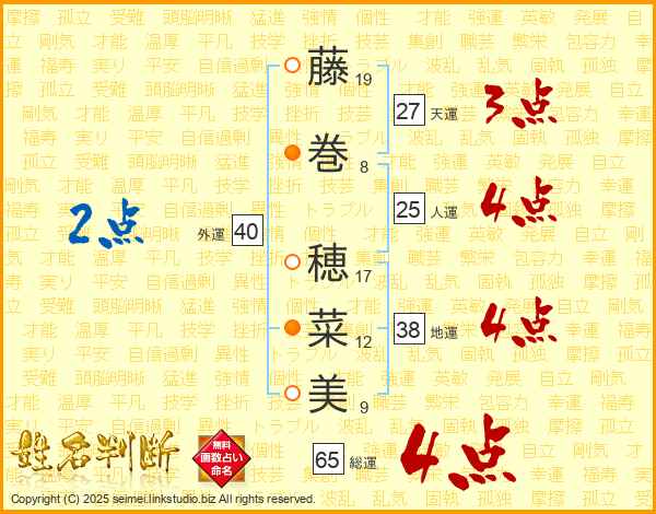 藤(19画)巻(8画) 穂(17画)菜(12画)美(9画)