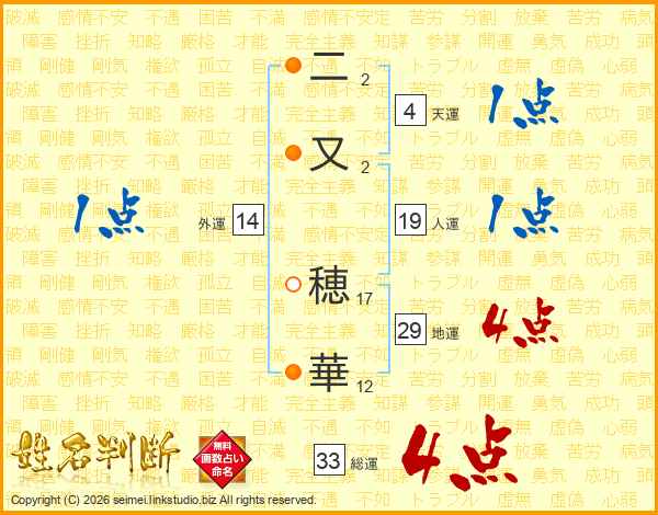二又穂華さんの総運は33画の4点!