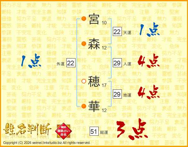 宮森穂華さんの総運は51画の3点!