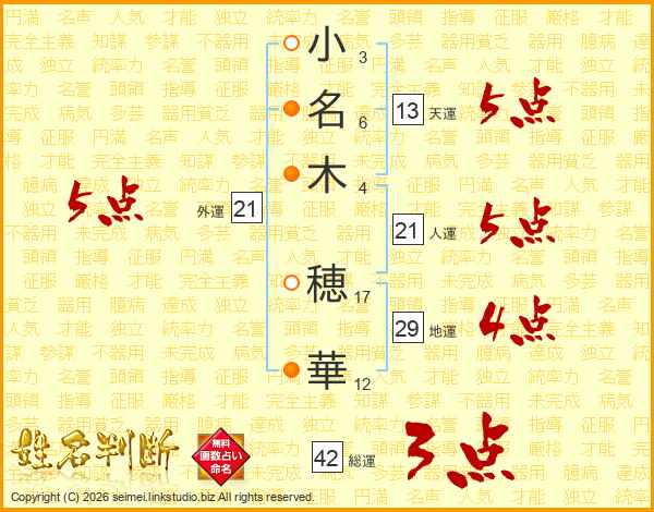 小名木穂華さんの外運は21画の5点!