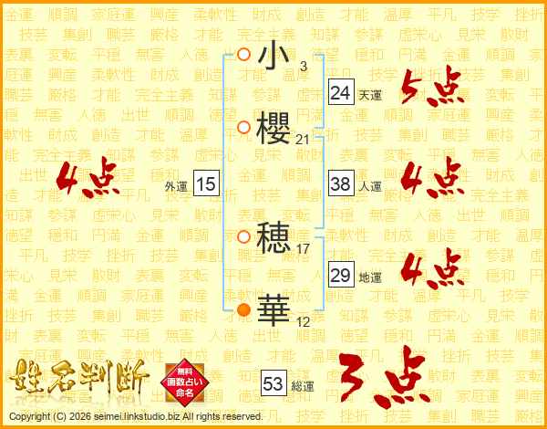 小櫻穂華さんの総運は53画の3点!