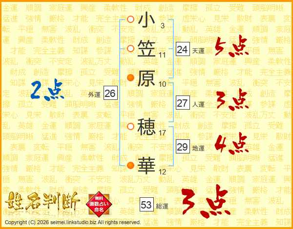 小笠原穂華さんの総運は53画の3点!