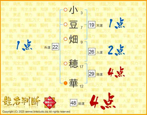 小豆畑穂華さんの総運は48画の4点!
