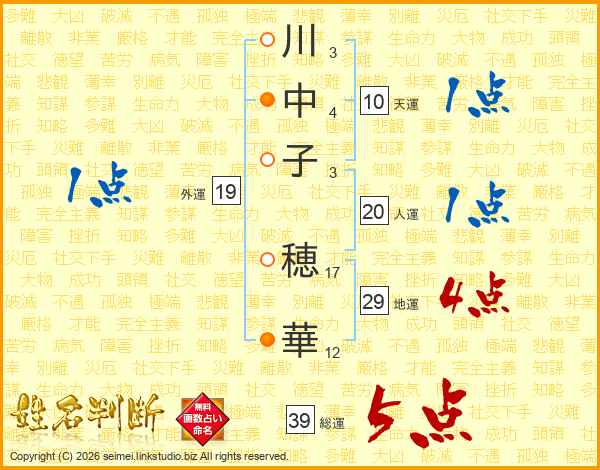 川中子穂華さんの総運は39画の5点!
