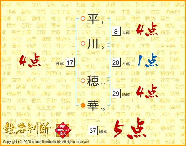 平川穂華さんの総運は37画の5点!