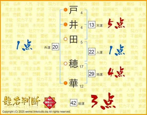 戸(4画)井(4画)田(5画) 穂(17画)華(12画)