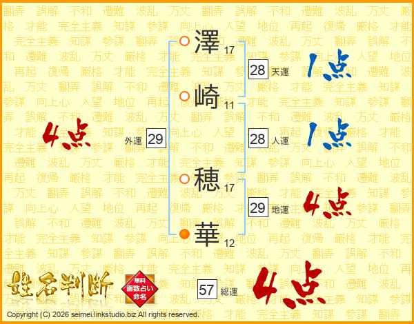 澤(17画)崎(11画) 穂(17画)華(12画)