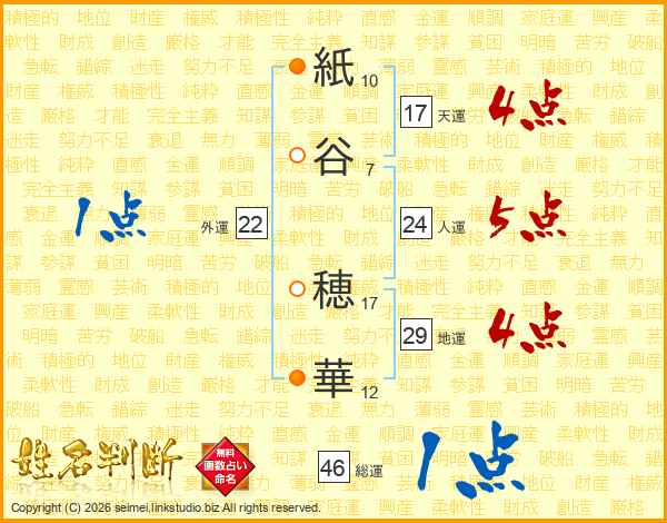 紙(10画)谷(7画) 穂(17画)華(12画)