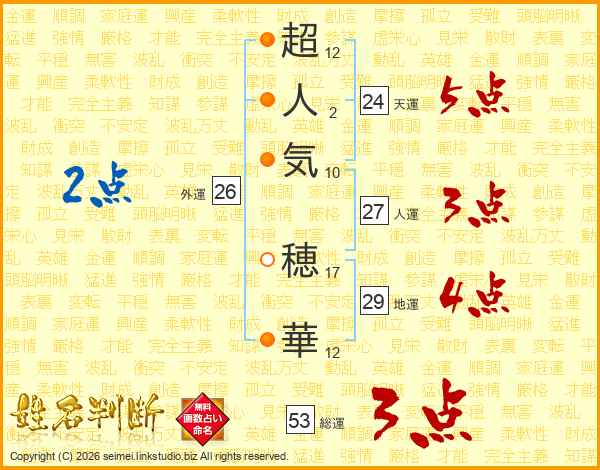 超人気穂華さんの総運は53画の3点!