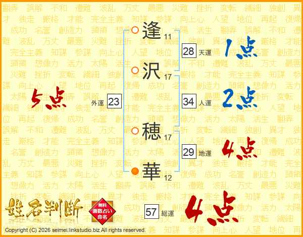 逢沢穂華さんの総運は57画の4点!