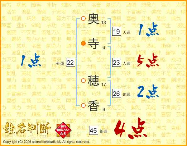 奥(13画)寺(6画) 穂(17画)香(9画)