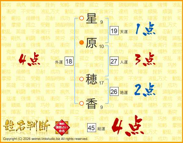 星(9画)原(10画) 穂(17画)香(9画)