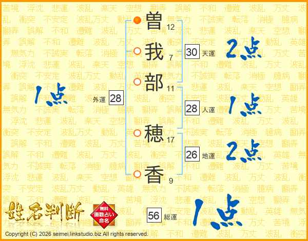 曽(12画)我(7画)部(11画) 穂(17画)香(9画)