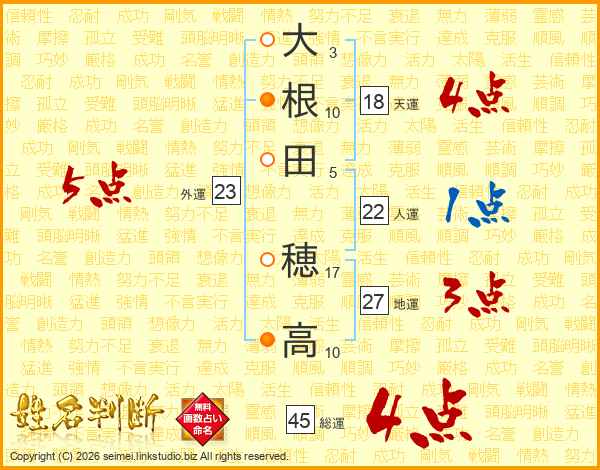 大(3画)根(10画)田(5画) 穂(17画)高(10画)