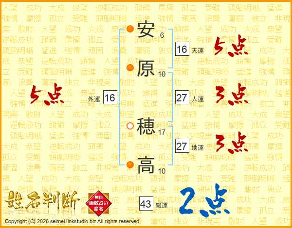 安原穂高さんの総運は43画の2点!