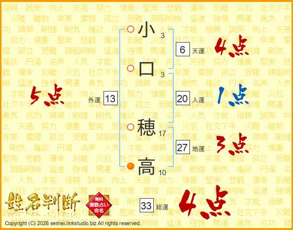 小口穂高さんの総運は33画の4点!