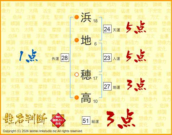 浜地穂高さんの総運は51画の3点!