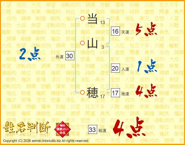 当山穂さんの総運は33画の4点!